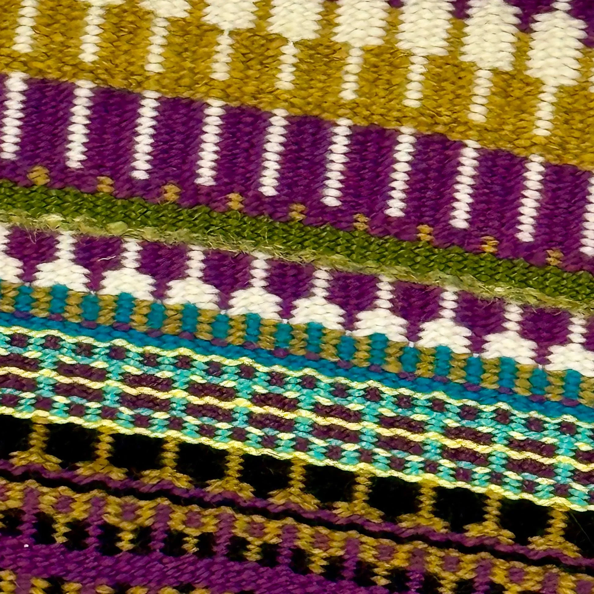 Come learn a tablet weaving technique that hails from Indonesia! Bands created on the island of Sulawesi have beautiful patterning and color interactions. You’ll learn how to weave these bands, as well as how to design your own patterns for them. Sulawesi-style tablet weaving is similar in structure to a double-faced weave, and similar in patterning to diagonal weaves. This technique will expand your horizons of what’s possible with tablet weaving.